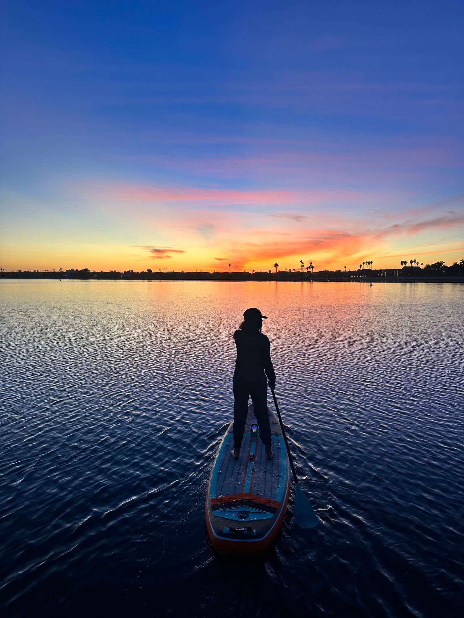 One hour of stand-up paddleboarding on Mission Bay at sunset, followed by one hour sweat session in the sauna bayside.